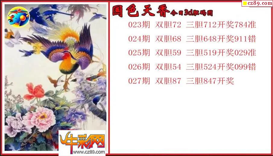 > 26年027期3d 国色天香今日胆码图